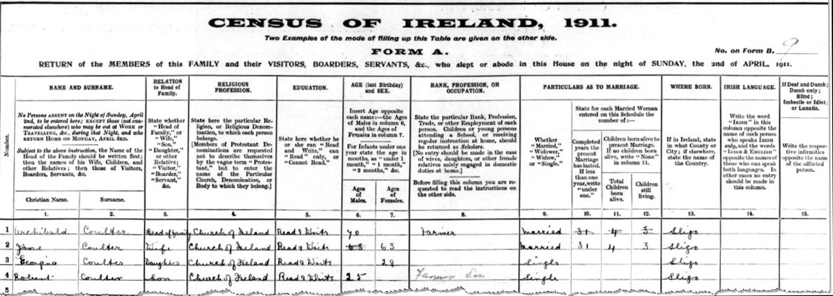 1911 Census Co. Sligo, Ireland