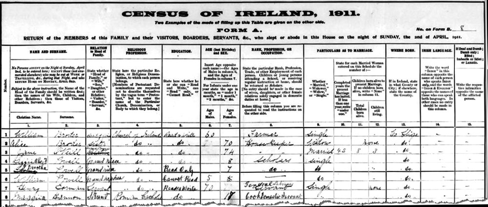 1911 Census Co. Sligo, Ireland