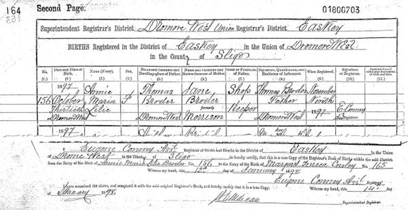 Some descendants of James Broder of Co Sligo