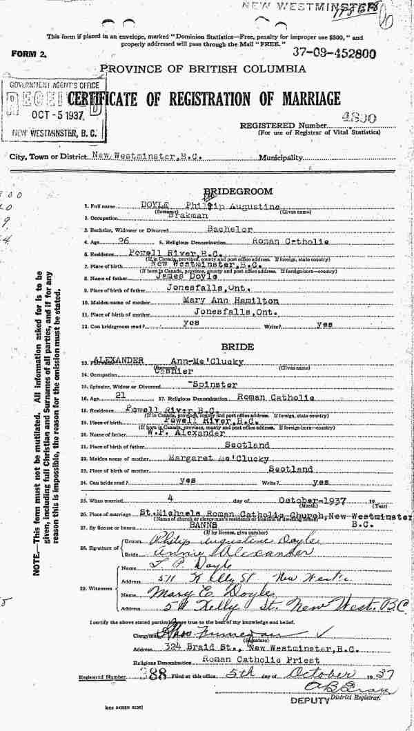 Doyle, Hamilton, Dunn and Jordan from Ireland to Ontario & B.C.